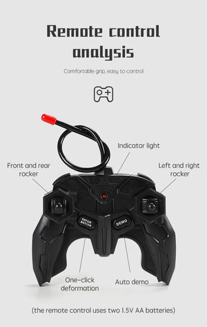 - Function: forward, backward, turn right, turn left, spin 360°, transform, cool light