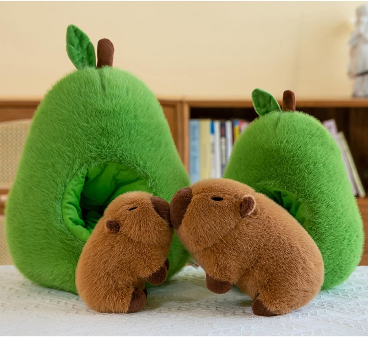 The little capybara tucked inside the avocado pit gives a distinctive touch to our Avocado Capybara design. A great addition to any child's toy collection or a charming decoration, the Avocado Capybara is robust and resistant to deformation.