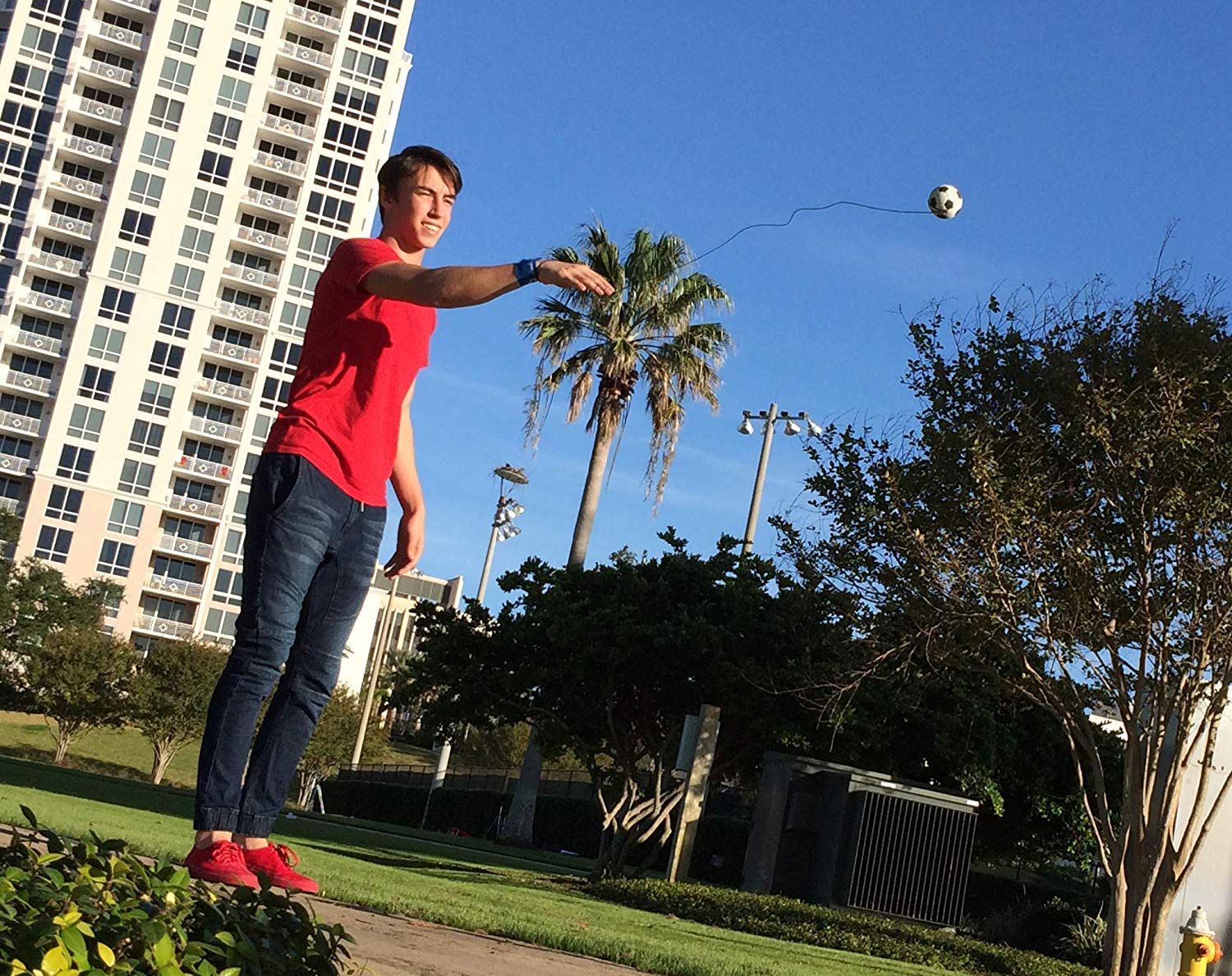 - Once thrown, the ball returns to you and is caught again, building eye/hand coordination skills to follow and catch the ball.
