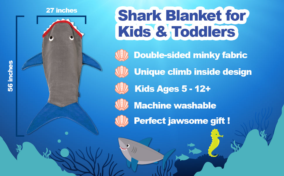 This shark blanket for boys and girls is designed for children ages 5-12. Please check the following dimension for your consideration: