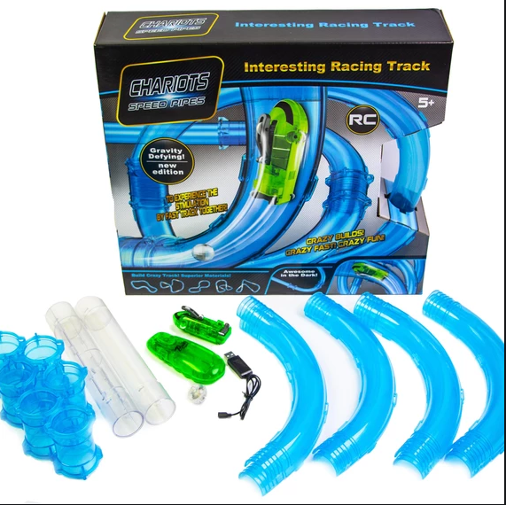 Control everything with the wireless remote; Super powerful motor that make the racer go lightning fast: The vehicles involved are very fast and can climb the pipe and go in all sorts of crazy directions.