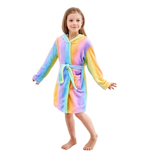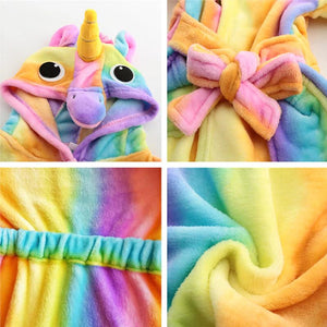 Colourful Rainbow Striped Unicorn Kids Bathrobe