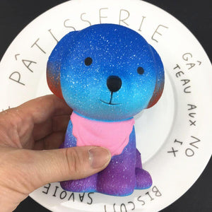 This cute rainbow dog squishy is waiting to get home! This cuddly squishy is soft and semi-fast rising! Perfect squishy for every dog lovers and galaxy lovers!!!