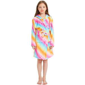 It comes in a diagonal stripe pattern in blue, mint, purple, pink and orange. White stars accent the stripes to give the pattern a mystical look. The hood comes with a matching horn, ears, and face.