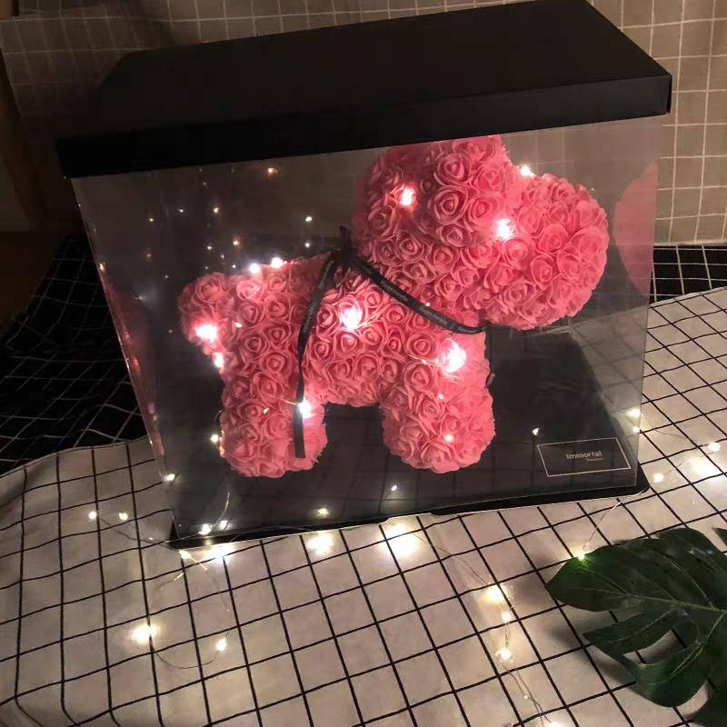 Gorgeous Pink Rose Puppy with LED Light and Gift Box - 40cm