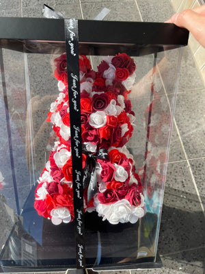Gorgeous Red n White Rose Bunny with LED Light and Gift Box - 40cm