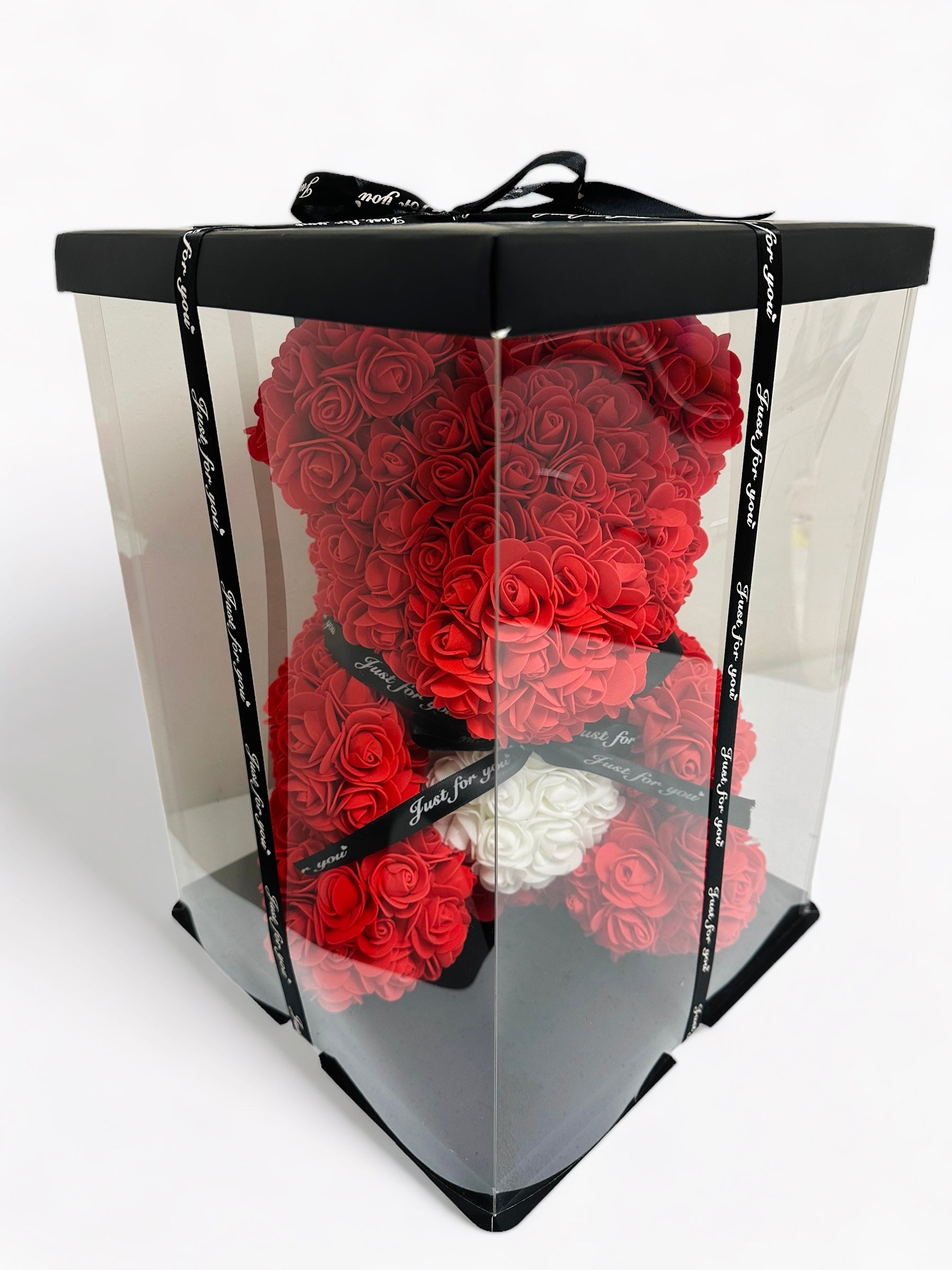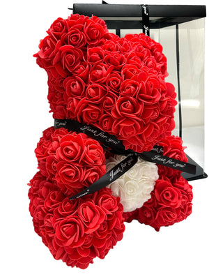 Gorgeous Red Rose Teddy Bear Hugging Heart with LED Light and Gift Box - 40cm