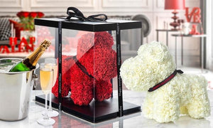 Gorgeous White Rose Puppy with LED Light and Gift Box - 40cm