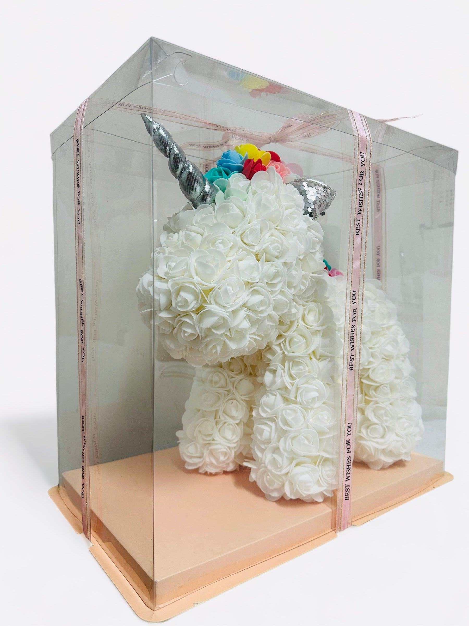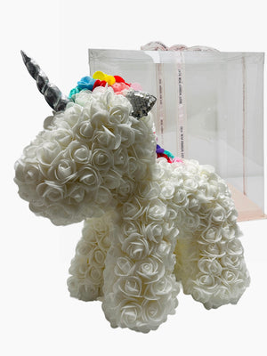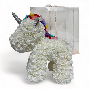 Gorgeous White Rose Unicorn with LED Light and Gift Box - 40cm