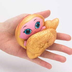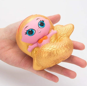Let some magic into your life! This mermaid is full of cuteness and is ready to share it with you all the time. Look how pretty its colourful hair is and a beautiful illustration on its tail is standing out! The big-sized squishy is soft and is made of a fast-rising squishy material.
