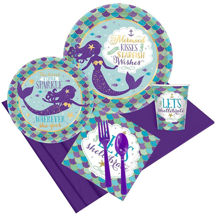 Mermaid Theme Birthday Party Tableware Package (#Type E)