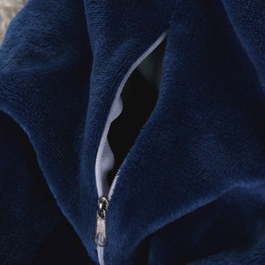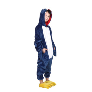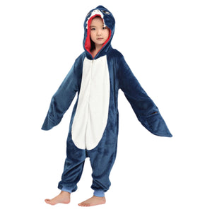 The navy-blue, one-piece flannel suit comes with a hood, featuring sharp teeth and big, wide eyes of a shark, making your child scary yet still charming at the children's party. It also has fin-like sleeves and a shark fin behind the outfit that complete the shark look.