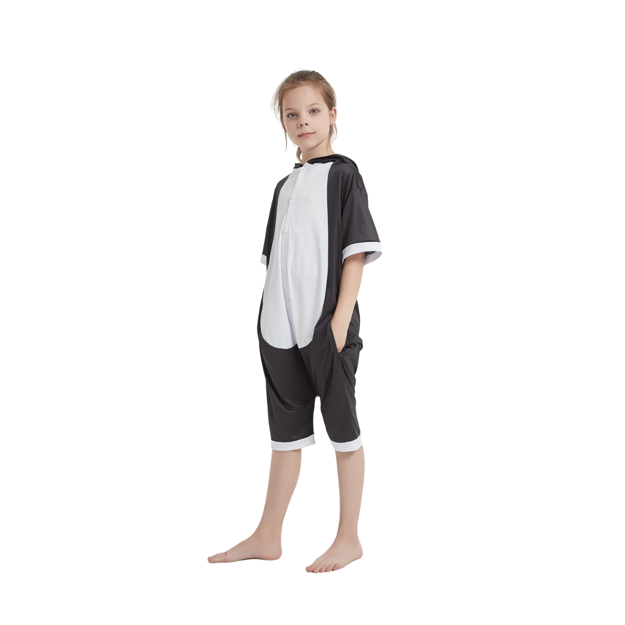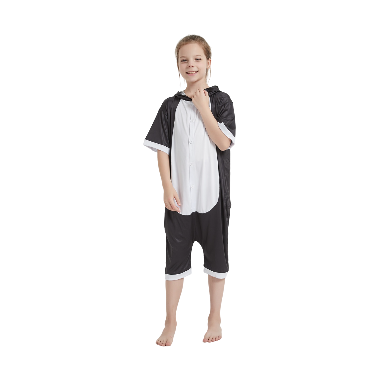 Our Panda Summer onesie comes in the classic panda styling of black and white, with a really cute big eyed muzzle and a little bun tail on it's baggy backside. The Panda onesie is extremely classy with its minimalistic design and monochromatic style. You'll be the sharpest looking animal on any occasion, whether it is a fancy dress party or a sleepover bash.
