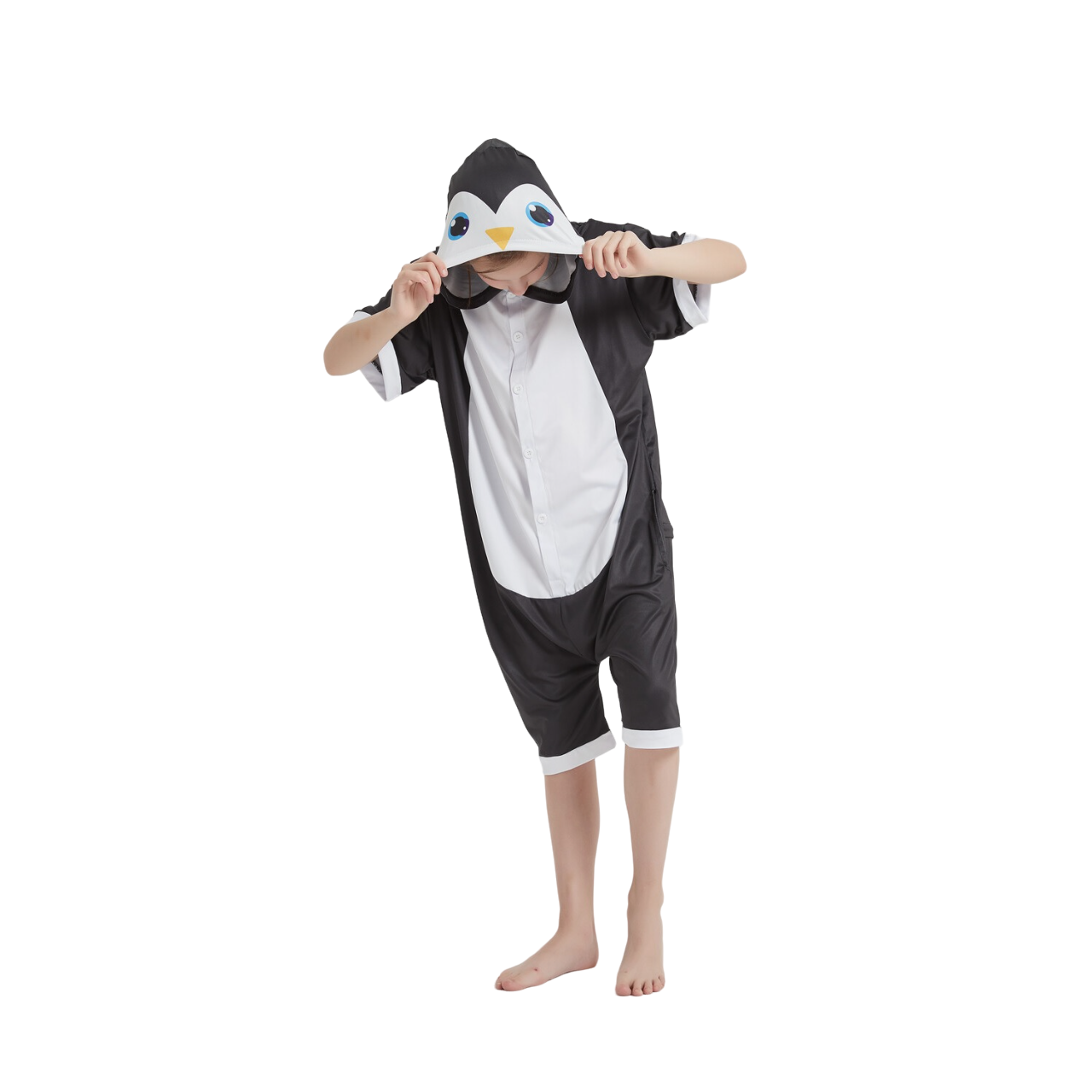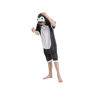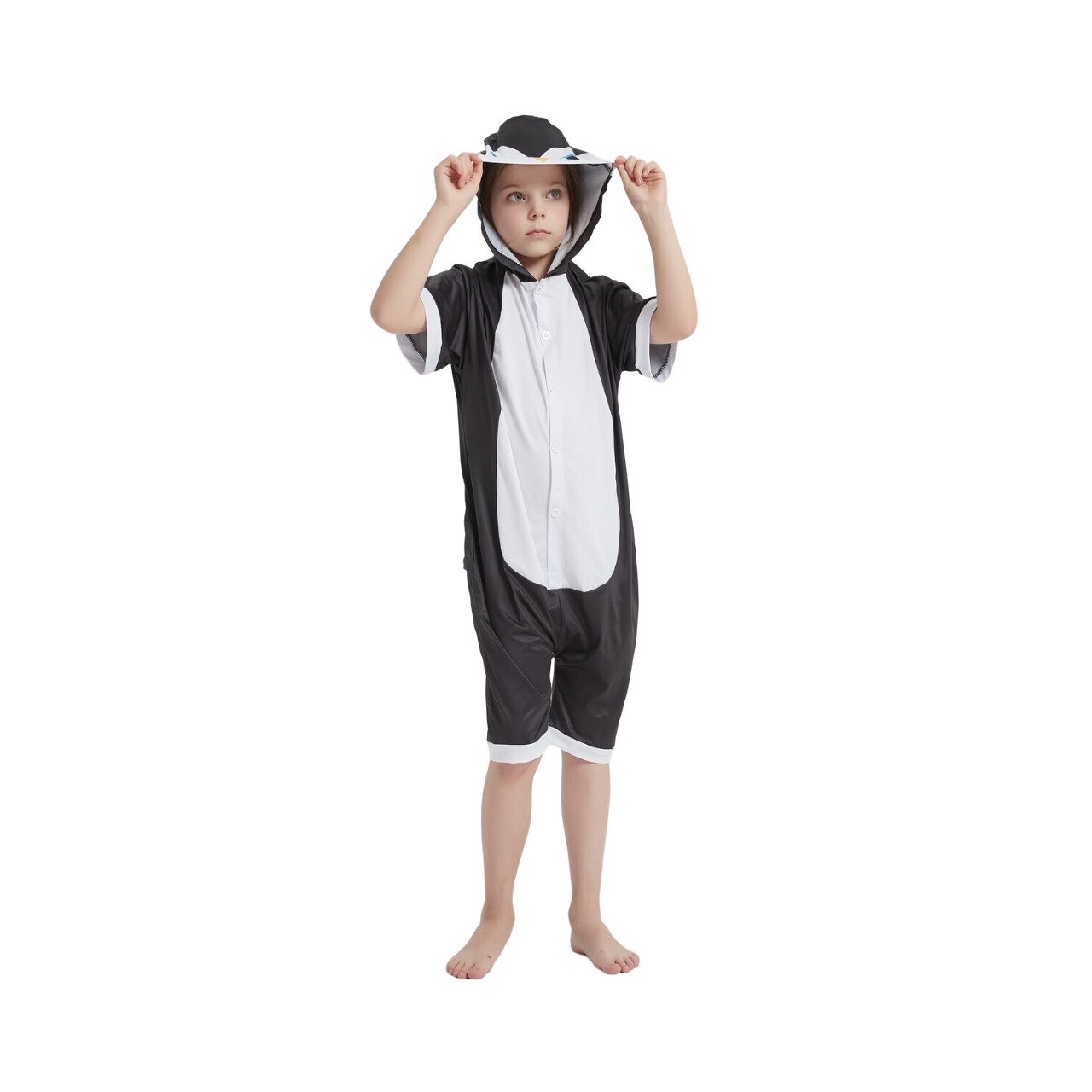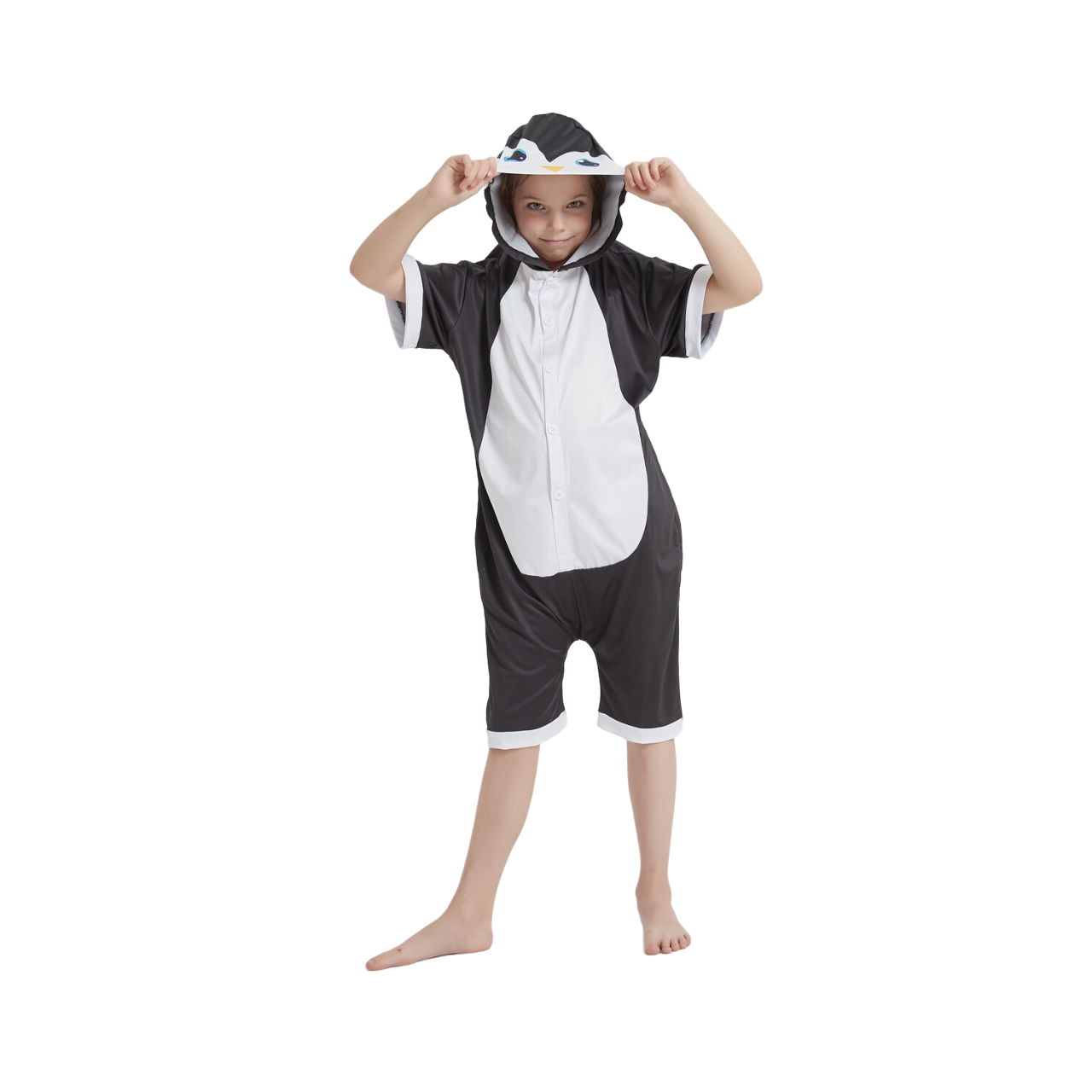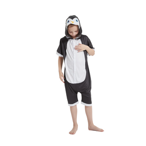 Penguins always know how to dress and now you can look great too in this penguin costume. The comfortable onesie style costume is easy to get into, with a button placket on the front. The body of the costume is black with a white belly. A white face with embroidered eyes and a yellow beak make up the hood of this costume.