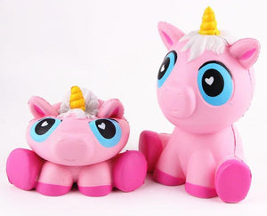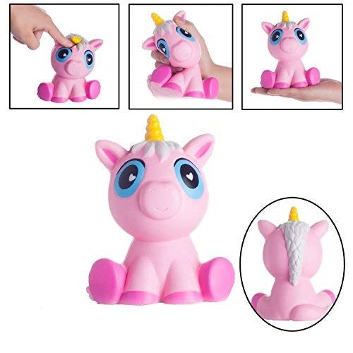 This super soft squishy is a SUPER adorable unicorn in bubblegum pink with big blue eyes. This medium-sized squishy is super soft and it smells amazing with a creamy scent.