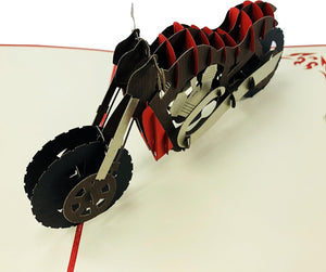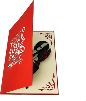 Open the Motorcycle 3D pop-up card to find a Harley Davidson 3D look-alike in all its elegance and grandeur. The pop-up comes complete with truly impressive wheels, an imposing body form and style that is unmatched! A splash of brown and red brings the motorcycle to life and makes it ready to roll. Cool, trendy and vibrant, this card rocks!