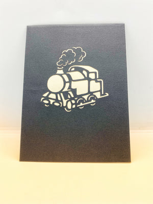 The railway lines embossed on the center of the crisp camel brown sheet triggers one’s imagination of travel tales. As you open, it displays a vintage hunter green and red steam train pop up in the center, astonishing your locomotive enthusiasts. Be it a birthday gift for your little superhero, or an old friend, this 3D card will surely add up to the collection of their memories