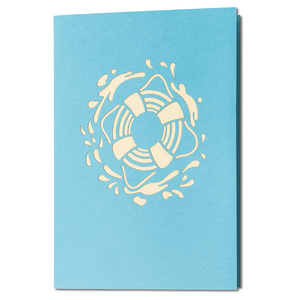 When opening the card, a floating block of swimmer pop up. Athletes in the pose on the podium are ready to jump. He started in a balanced position, his legs equal, his hands clinging to his feet. Below, there was another athlete spreading his wings in the blue water. There is blank space or you to send a few words to the recipient.