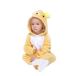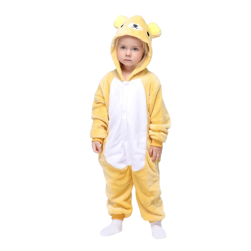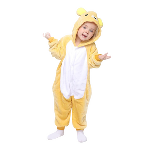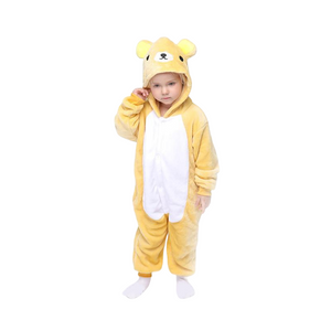 Our Rilakkuma Cosplay Onesies have everything your kid's needs in a comfy yet stylish outfit. For one, this garment is so adorable that anyone who sees your child wearing it can't resist his charm. This yellow jumpsuit has a cute hoodie, featuring Rilakkuma's adorable face. It also has a white belly and a bear tail behind the onesie that complete the look.