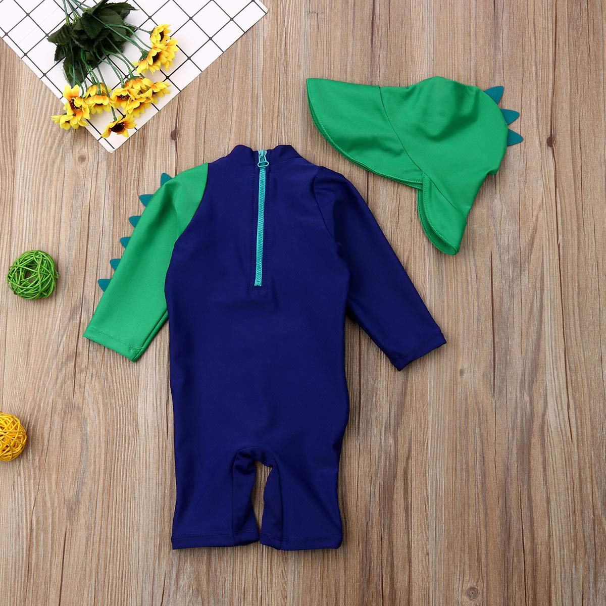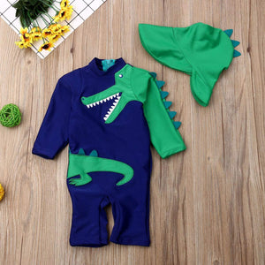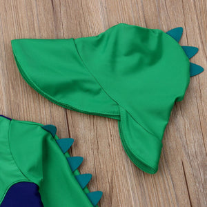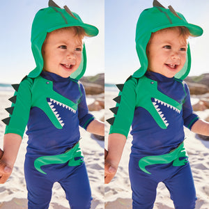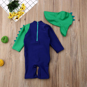 Set of Dinosaur One-Piece Long-sleeve Swimsuit and Hat