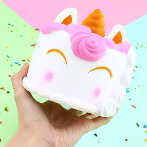 The jumbo-sized adorable unicorn cream cake squishy toy almost look like a real fantasy birthday cake! It's covered in whipped cream looking icing and decorations and has the cute unicorn face! This squishy is one of the most slow rising, and you can use it as decoration or just to relieve stress! How sweet!!!