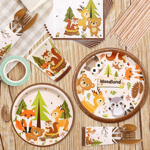 Featuring all your favorite woodland creatures, including foxes, hedgehogs, squirrels, bears, trees and tribal prints this cute, modern range of plates, cups and napkins is perfect for creating some forest-inspired magic for your child's birthday!